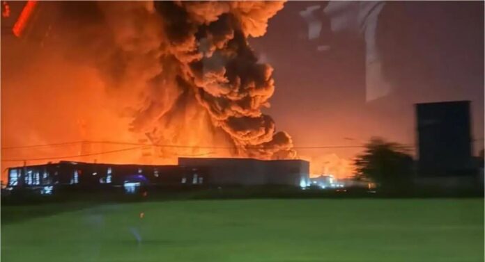 Una autovía cercana permanece cerrada por precaución y más de veinte dotaciones de bomberos se encuentran en la zona.
