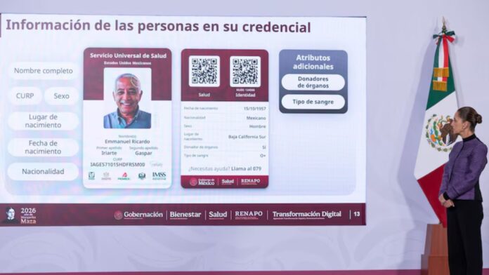 En su versión impresa, la credencial incluirá datos como nombre completo, CURP, sexo, lugar y fecha de nacimiento, nacionalidad, tipo de sangre y si la persona es donadora de órganos, además de los códigos QR. Por su parte, la versión digital estará disponible a partir de abril en la App MX y contendrá la misma información, junto con la clínica asignada.