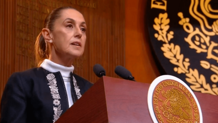 En su mensaje político, también dejó en claro que México no regresará a un régimen de privilegios, corrupción ni a convertirse en colonia o protectorado de ninguna nación. Añadió que el país tampoco entregará sus recursos naturales y que la defensa de la soberanía es un principio irrenunciable de su gobierno.