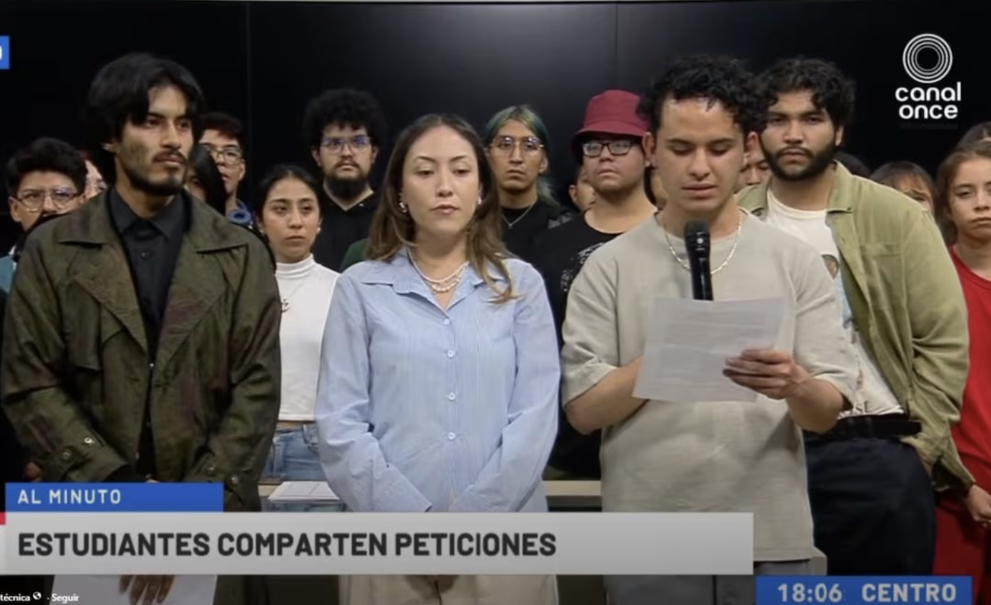 Estudiantes del Instituto Politécnico Nacional (IPN) tomaron las instalaciones de Canal 11 para visibilizar problemáticas internas y exigir atención de las autoridades educativas. La protesta surgió luego de que se les negara el acceso a la televisora pública para transmitir sus demandas, lo que llevó a los alumnos a ingresar al recinto y buscar un espacio para exponer su postura.