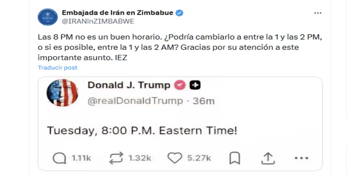 Las publicaciones han ido desde respuestas directas a mensajes de Trump hasta contenidos más elaborados con tono satírico. Uno de los ejemplos más comentados surgió cuando, tras un mensaje del mandatario estadounidense sobre el estrecho de Ormuz, una embajada iraní respondió con un simple “hemos perdido las llaves”. Otras cuentas diplomáticas compartieron imágenes editadas, bromas sobre discursos públicos e incluso comparaciones sarcásticas que también incluyeron referencias al primer ministro israelí, Benjamin Netanyahu.