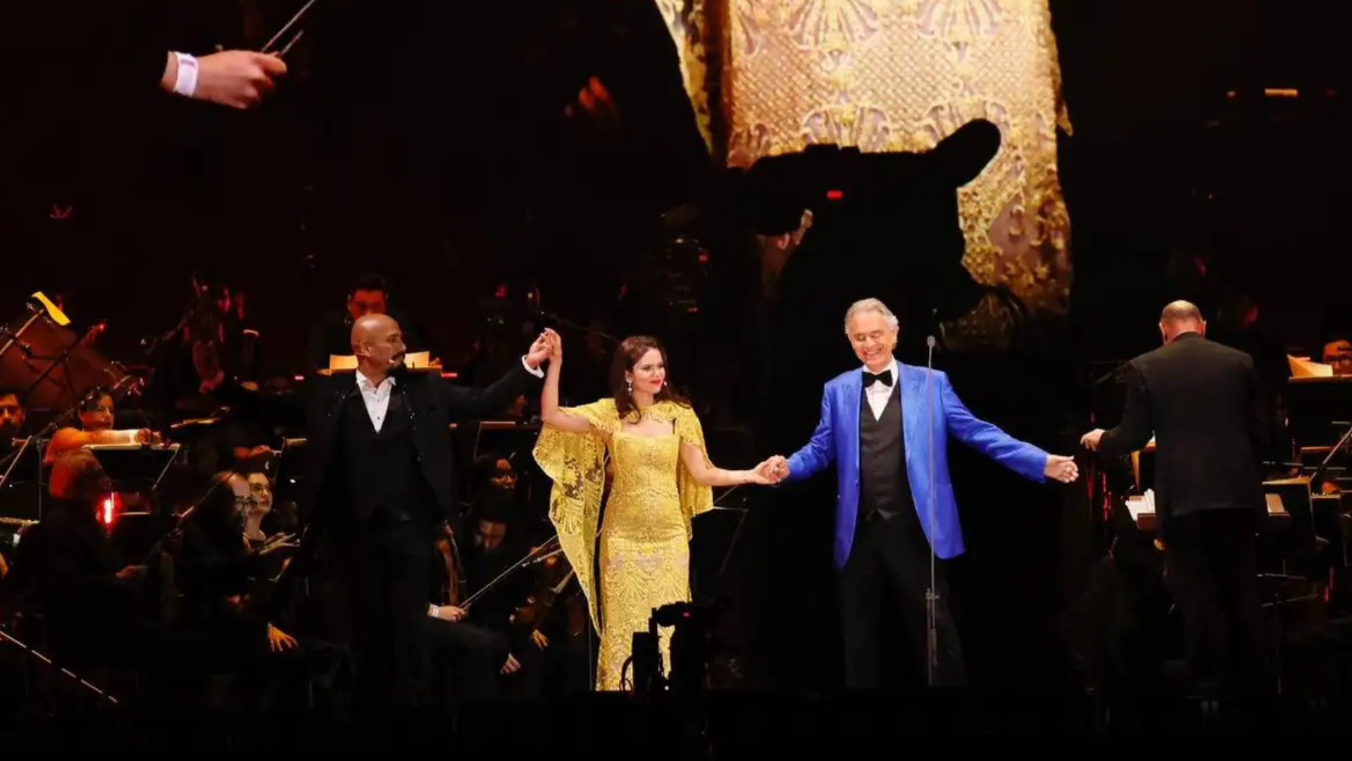 En esa misma tónica, y luego de que Bocelli dio en español las gracias por “esta maravillosa noche”, llegó la esperada fusión de ópera y cumbia: la voz del tenor y el quehacer de la orquesta sinfónica en un abrazo fraternal con el guapachoso ritmo de Los Ángeles Azules, en la interpretación de otro de sus grandes clásicos: Vivo por ella.